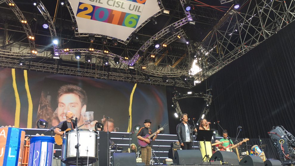 Il via al Concertone a Roma, promosso dai sindacati e in diretta tv su Rai3 e su Radio2, lo ha dato la Bandabardò. A scatenare la folla – che ha sfidato i nuvoloni grigi e le misure di sicurezza che sono state rafforzate – ci hanno pensato i Perturbazione, scesi dal palco per cantare con i ragazzi delle prime file, e i Modena City Ramblers con la Fanfara di Tirana, presenza quasi fissa dell’appuntamento romano. Il gruppo folk emiliano ha portato due tra i suoi brani più famosi e conosciuti: I cento passi e Bella Ciao. Sul palco anche Gianluca Grignani che si è schierato con il “popolo” (“io non sono né di destra né di sinistra”).