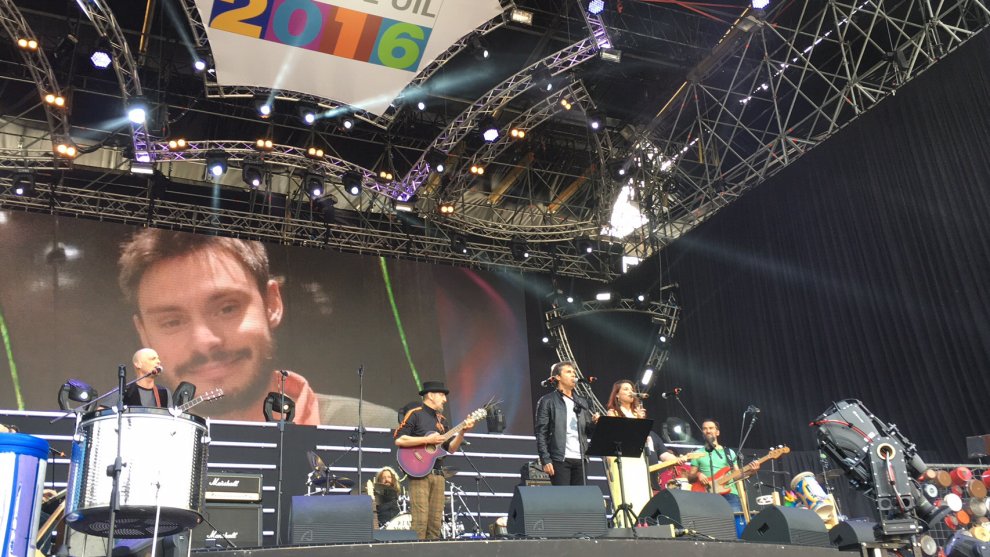 Dopo il tributo a Regeni, con la foto sui maxi schermi Barbarossa, ha intonato Here’s to you, di Ennio Morricone, il brano composto dal maestro premio Oscar per il film su Sacco e Vanzetti e da sempre inno contro la violenza sugli innocenti.