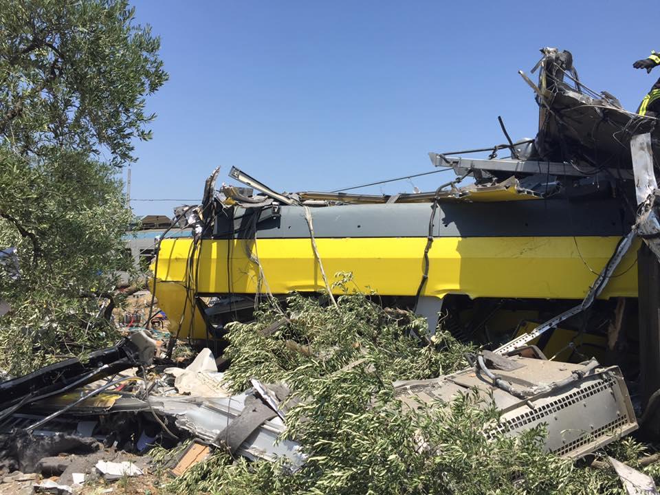 Un incidente ferroviario si è verificato nella tarda mattinata di mercoledì 12 luglio sulla tratta Corato – Andria delle Ferrovie del Nord Barese. Sul posto sono giunte le ambulanze del 118 e mezzi dei vigili del fuoco per la presenza di diverse vittime (11 morti dicono i primi dispacci ufficiosi ma il bilancio potrebbe essere purtroppo peggiore) e numerosi feriti tra i passeggeri. La linea è gestita dalla Ferrotramviaria. Il bilancio delle vittime, inizialmente fermo a quota 11, è peggiorato quando uno dei feriti è morto in ospedale a Barletta. Subito dopo è arrivata una notizia ancora più grave: “Ci sono 23 vittime e quattro feriti in codice 4. La situazione è in evoluzione”. Lo ha detto ai giornalisti il vicepresidente della Provincia Bat, Giuseppe Corrado. Tra le vittime c’è anche uno dei due macchinisti.