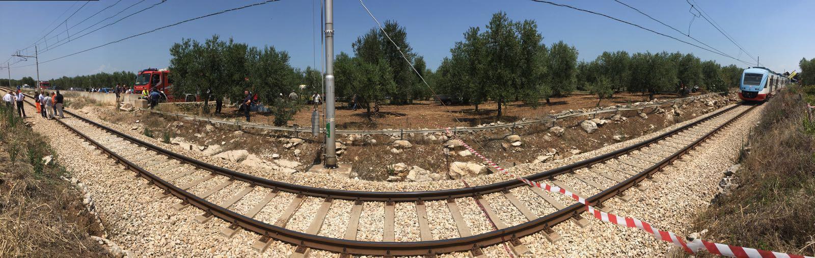 Un incidente ferroviario si è verificato nella tarda mattinata di mercoledì 12 luglio sulla tratta Corato – Andria delle Ferrovie del Nord Barese. Sul posto sono giunte le ambulanze del 118 e mezzi dei vigili del fuoco per la presenza di diverse vittime (11 morti dicono i primi dispacci ufficiosi ma il bilancio potrebbe essere purtroppo peggiore) e numerosi feriti tra i passeggeri. La linea è gestita dalla Ferrotramviaria. Il bilancio delle vittime, inizialmente fermo a quota 11, è peggiorato quando uno dei feriti è morto in ospedale a Barletta. Subito dopo è arrivata una notizia ancora più grave: “Ci sono 23 vittime e quattro feriti in codice 4. La situazione è in evoluzione”. Lo ha detto ai giornalisti il vicepresidente della Provincia Bat, Giuseppe Corrado. Tra le vittime c’è anche uno dei due macchinisti.