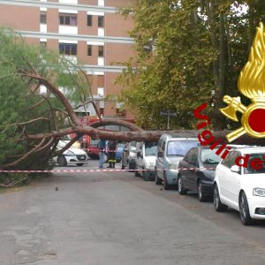 “in via dei Gracchi, intorno alle 17, un albero si è abbattuto su due automobili. A Talenti, all’incrocio tra via Corrado Alvaro e via Renato Fucini, un mezzo dei vigili del fuoco, più autogru con 10 unità, sono intervenuti nel parco pubblico di largo Sergio Pugliese per la caduta di un pino marino che ha coinvolto tre autovetture, tra cui un furgoncino bianco. Per precauzione, tre attività commerciali sono state chiuse — oltre al tratto stradale interessato — mentre i pompieri e i responsabili del Servizio Giardini sono al lavoro per verificare che altri cinque arbusti non rischino di cadere, dato che l’albero caduto è risultato essere senza radici. Sul posto anche l’assessore all’Ambiente del III municipio, Mimmo D’Orazio. “L’agronomo ha dichiarato i pini instabili, perciò lunedì cominceremo con le verifiche strutturali ai pini. Tutta la zona verrà interdetta al traffico privato a ridosso dell’area verde”, ha spiegato”.