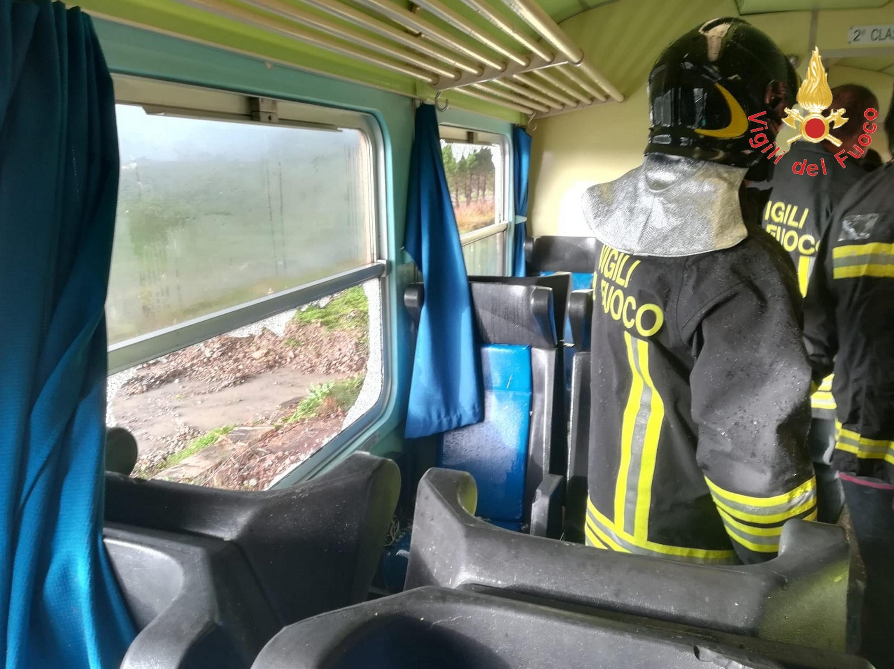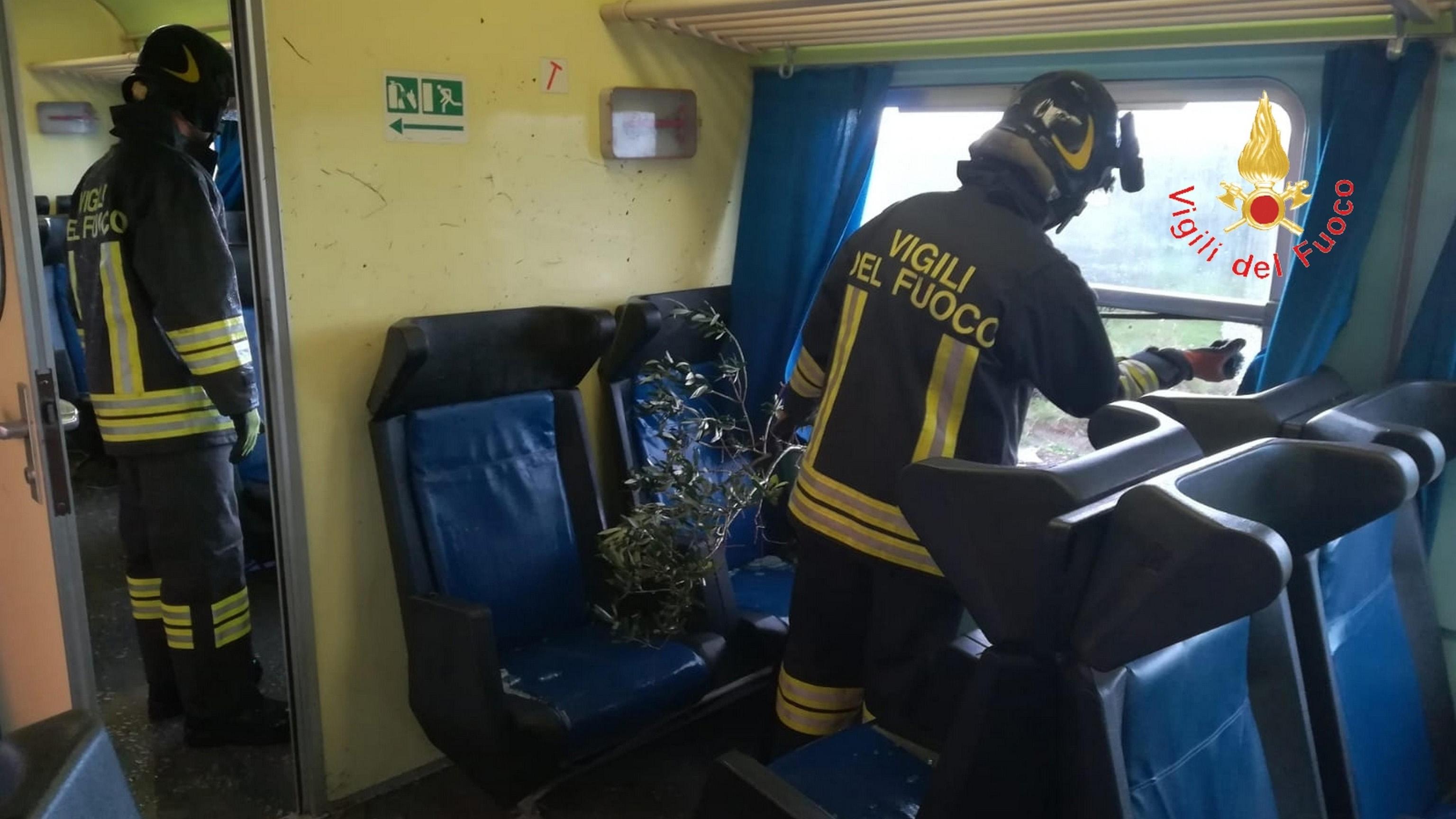 Il vento ha sballottato il convoglio che, fortunatamente, è rimasto sui binari. Diversi finestrini sono andati in frantumi.