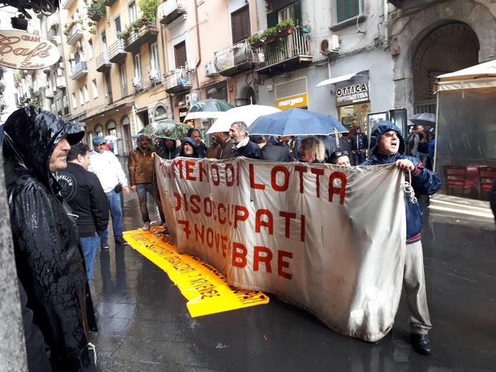 NAPOLI – Momenti di tensione a Napoli, poco prima dell’arrivo del segretario Pd Nicola Zingaretti. Accade dinanzi all’ingresso del Teatro Sannazaro, dove il leader Pd era atteso per dare il via alla campagna elettorale in vista delle europee. Una trentina di disoccupati aderenti alla lista “7 novembre” si sono raccolti dinanzi all’ingresso, dietro lo striscione “Basta campagne elettorali sulla pelle dei disoccupati” e inneggiando slogan contro la Regione Campania e per il lavoro.