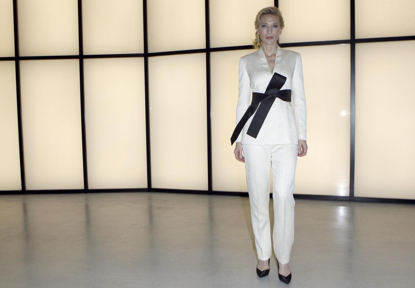 Tante le star arrivate in città per festeggiare i suoi 40 anni di carriera e per assistere all’apertura del suo Silos e alla sfilata di una selezione di capi della sua linea di alta moda. Il più atteso, Leonardo di Caprio, è stato anche il più schivo, forse l’unico a non concedersi alla stampa. Dopo la visita al museo di Armani, l’attore di Wolf of Wall Street è rimasto in cortile a bere e chiacchierare con alcuni amici. Decisamente più disponibili colleghi come Hillary Swan, bellissima in un abito bustier con rose ricamate e “orgogliosa di partecipare a questa notte speciale”, la raggiante Cate Blanchett in tailleur pantaloni bianco, la sorridente Glenn Close in bianco.