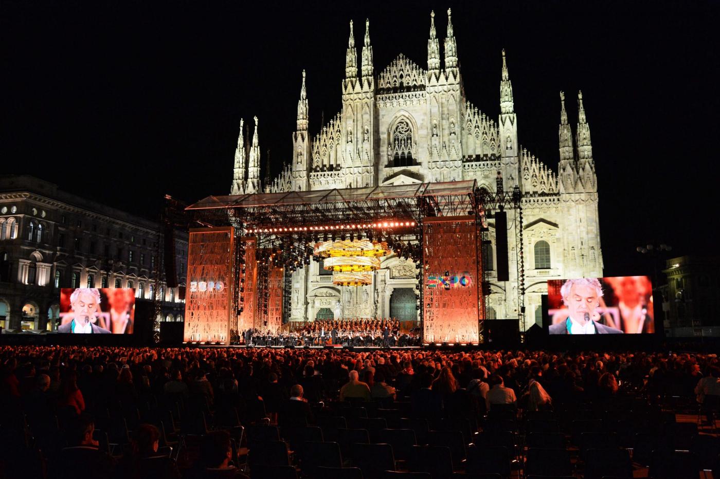 MILANO – Un concerto di apertura con oltre 20mila persone in piazza Duomo a Milano e una sfilata di ospiti vip per i 40 anni di carriera di Giorgio Armani. Alla vigilia dell’apertura dell Expo di Milano il 1° maggio, l’avventura inizia con Andrea Bocelli che dal palco di piazza Duomo intona “All’alba vincerò”. L’avvio, trasmesso in mondovisione, ha voluto mostrare il meglio dell’Italia (con alcune fra le arie d’opera più conosciute) e anche del sito, con un collegamento per mostrare ai telespettatori cosa offre Expo.