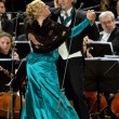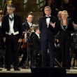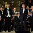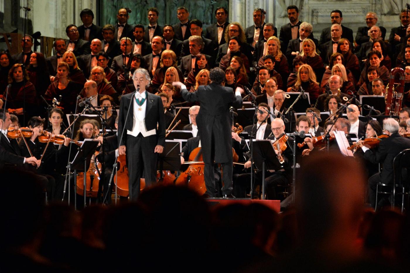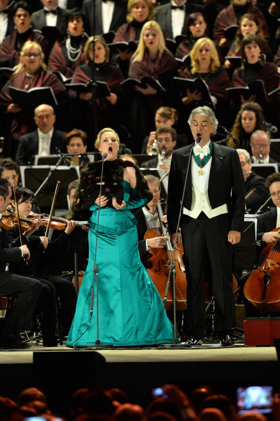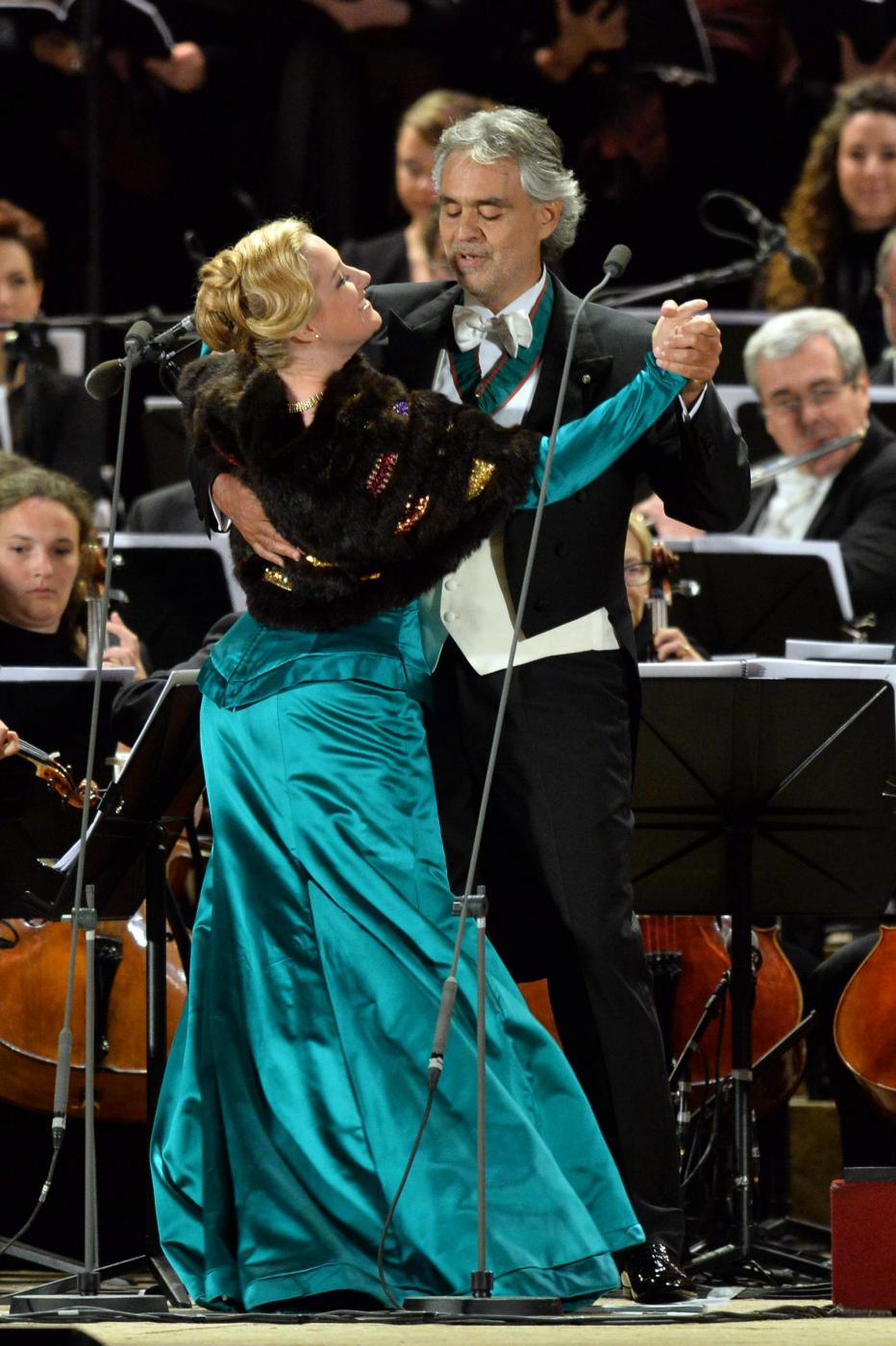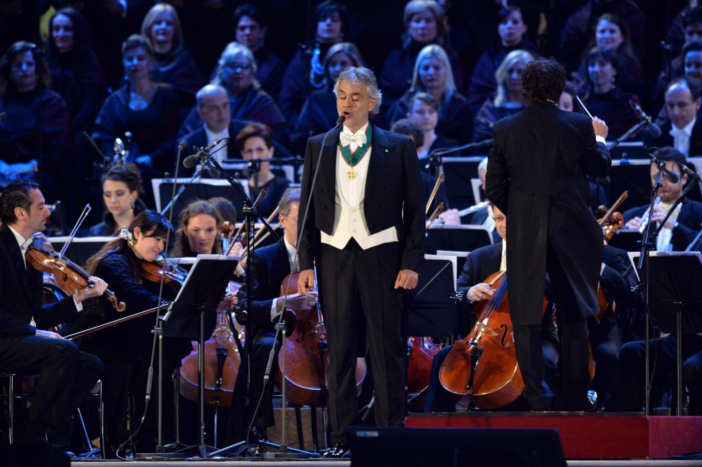L’inizio è stato con Verdi. L’orchestra e il coro della Scala e dell’Accademia scaligera, dirette da Marco Armiliato, hanno eseguito l’ouverture dell’Attila. E Bocelli si è esibito (con le soprano Diana Damrau e Maria Luigia Borsi, il tenore Francesco Meli e il baritono Simone Piazzolla) in brani conosciuti come il brindisi della Traviata, ‘Di quella pira’ dal Trovato re, ‘E lucean le stelle’ da Tosca. Impossibile rinunciare al ‘Va’, pensiero’.