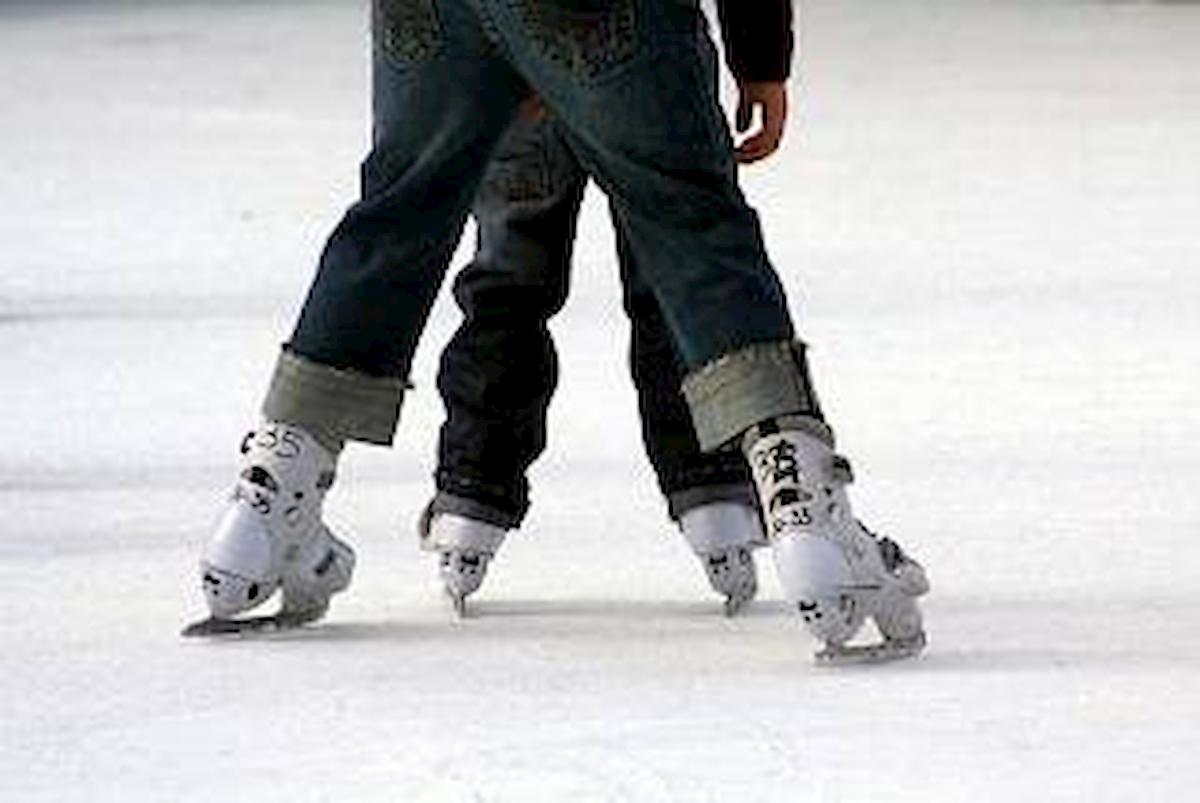 Un maestro di pattinaggio e il suo piccolo allievo in una foto di repertorio