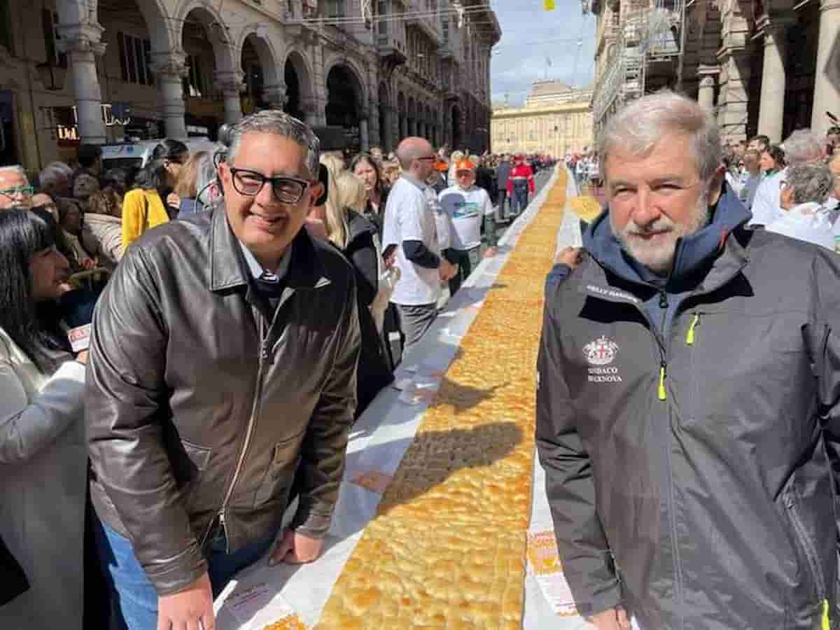 “È una focaccia che gareggia in lunghezza con la nave da crociera più lunga mai entrata nel porto di Genova, – sottolinea il presidente della Regione Giovanni Toti – due bei record e soprattutto una bell’inizio di stagione che porterà soddisfazione ai nostri operatori del commercio, del turismo e dell’agroalimentare”.