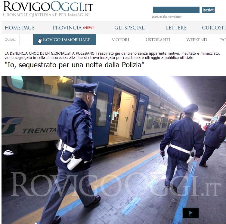ROVIGO – Francesco Saccardin, giornalista di Rovigo, ha denunciato la polizia per averlo “sequestrato per una notte“. Saccardin, 38 anni, collaboratore di Rovigo Oggi, per il quale si occupa di cronaca nera, la sera di sabato 19 luglio ha preso il treno per andare alla festa del Redentore di Venezia.