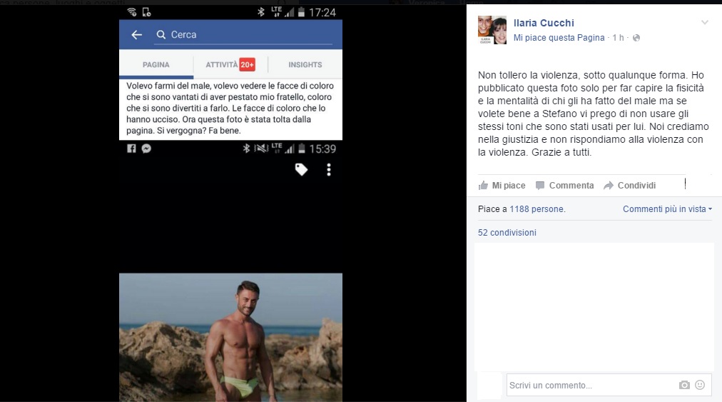 ROMA – Ilaria Cucchi ha deciso di eliminare da Facebook i post sugli indagati per la morte del fratello Stefano. Sempre sul social network ha scritto: