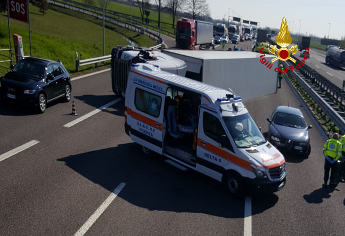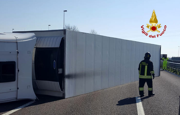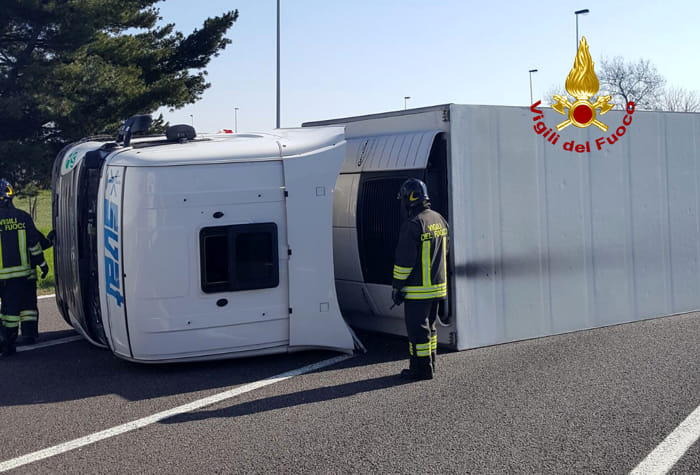L’incidente si è verificato nei pressi della rampa d’immissione in direzione Milano. I due occupanti della cabina sono rimasti feriti. Il primo soccorso è stato dato da due Vigili del Fuoco del comando di Trieste, che per motivi di servizio stavano andando a Brescia.