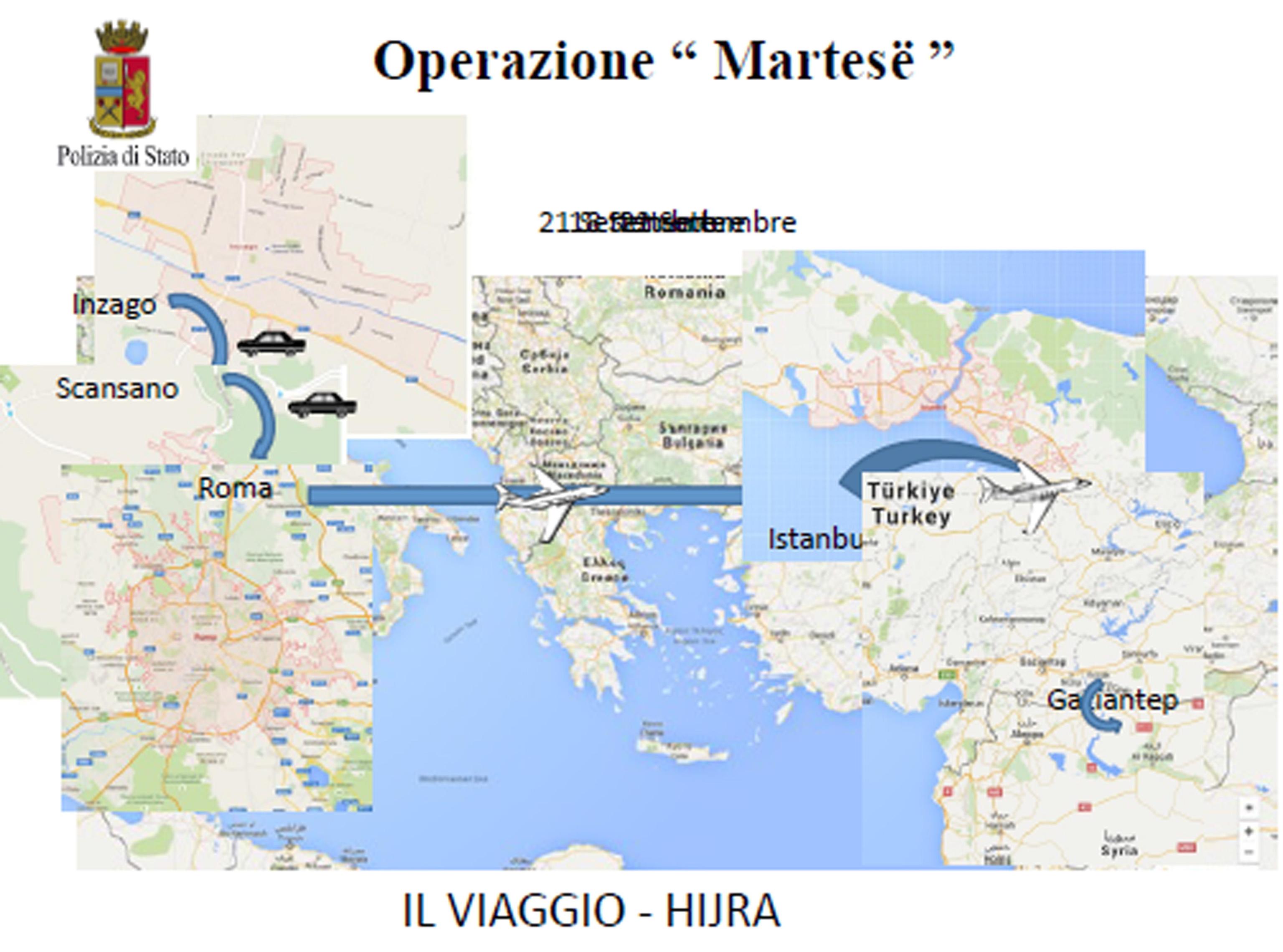 Le indagini hanno consentito di ricostruire il percorso seguito dalla giovane coppia. Grazie alle intercettazioni di un telefono in uso ad un coordinatore dell’organizzazione dei foreign fighters dello Stato Islamico è stato possibile ricostruire come vengono accolti e distribuiti sul territorio siriano gli stranieri che da varie parti del mondo partono per raggiungere il Califfato.