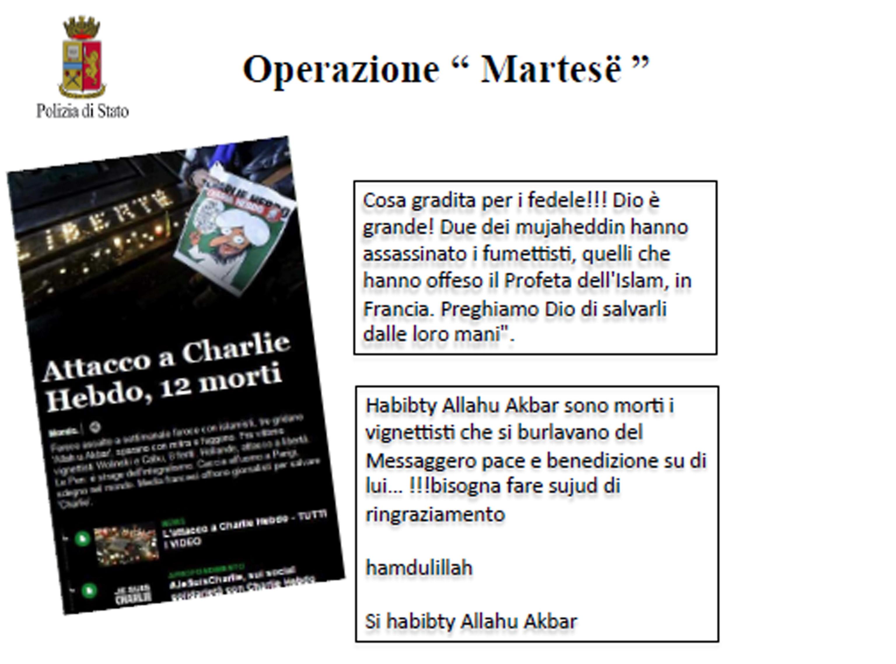 Gli indagati sono parte di due famiglie, la prima formata da italiani convertiti da qualche anno all’Islam, la seconda da cittadini albanesi residenti nel grossetano. Le due famiglie si sono imparentate con il matrimonio di una giovane coppia, e stavano organizzando un viaggio alla volta della Siria per combattere a fianco degli jihadisti.