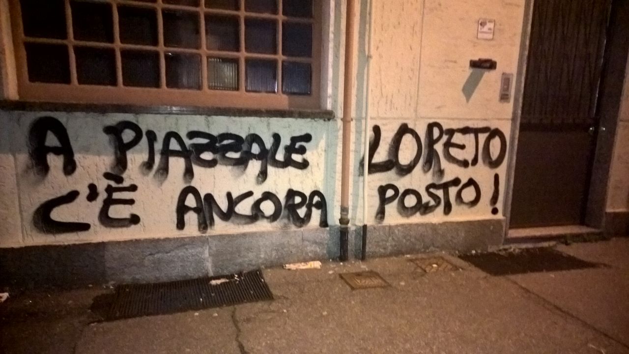 “Nello stesso quartiere, in via Cervino, all’esterno della sede del Pd, è comparso un terzo manichino, appeso al contrario. Al posto del volto, la fotocopia sbiadita di una foto di Matteo Renzi. A fianco, la scritta: «Ieri ebrei e rom, oggi immigrati e rom: dalle leggi razziali alle leggi razziste». Indaga la Digos su tutti gli episodi, che ipotizza che si tratti di un blitz del movimento anarchico torinese, che si è sempre professato «antifascista e antileghista»”.
