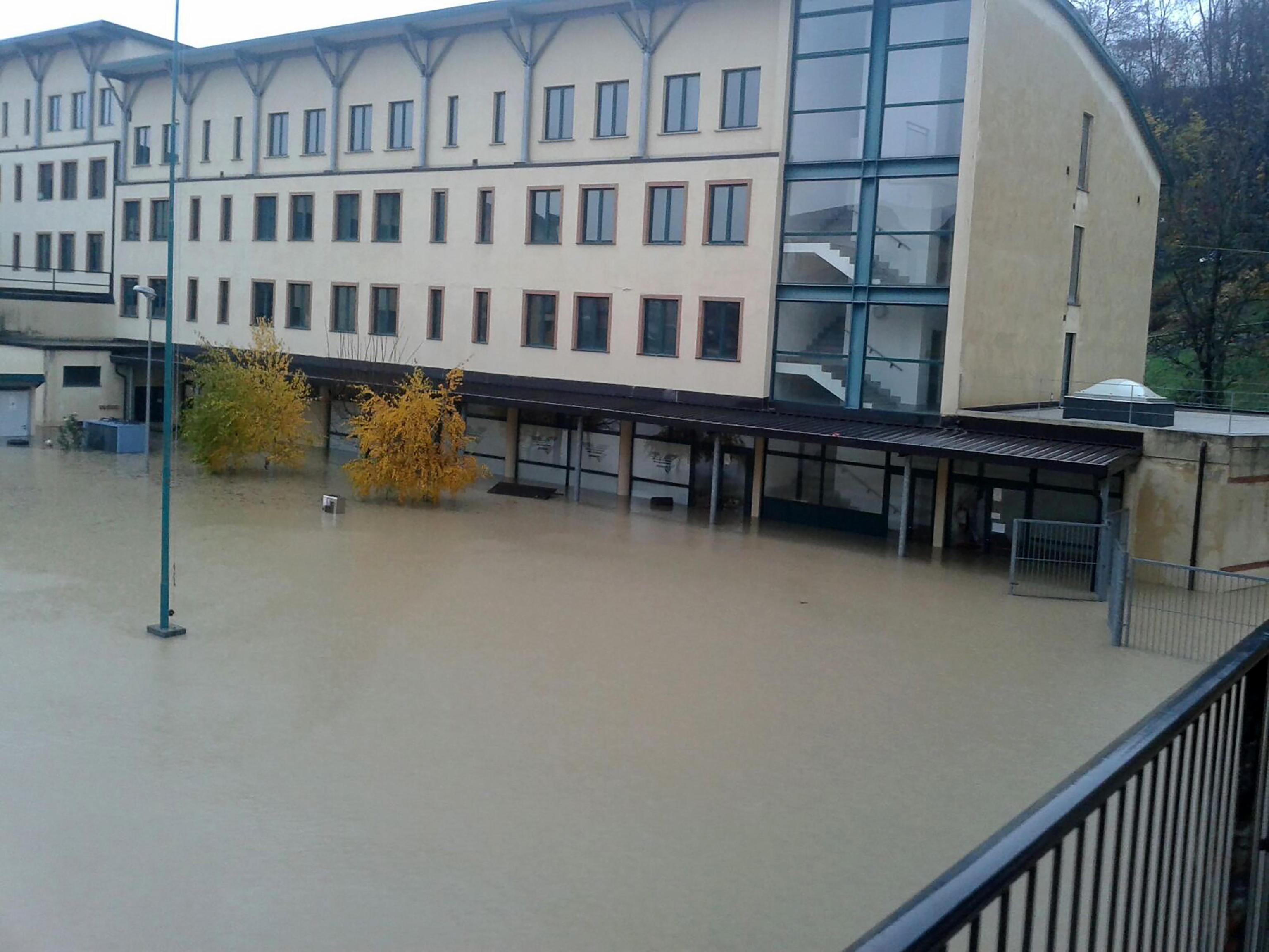 Il Tanaro ha invaso la piazza d’armi e il centro di formazione del Corpo forestale nella caserma “G.Galliano” di Ceva, Cuneo, 24 novembre 2016. ANSA/RAFFAELE SASSO