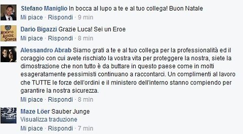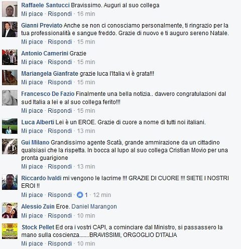 Nel giro di pochi minuti il profilo Facebook del poliziotto eroe, aperto a tutti, è stato letteralmente riempito di messaggi di ringraziamento davvero toccanti per il servizio reso al suo paese.