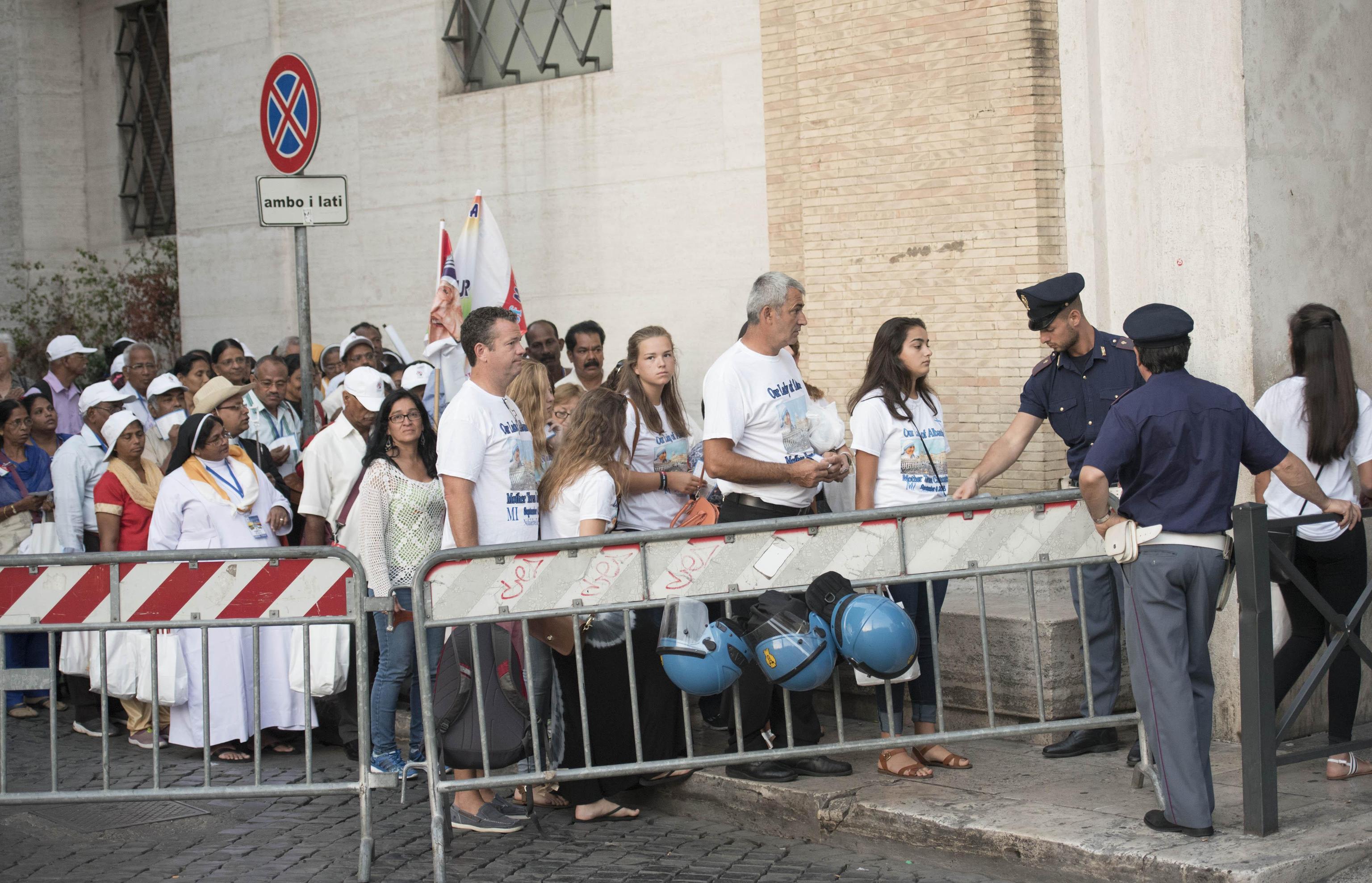 Lunghe code si sono formate intanto ai controlli dei metal detector da cui si accede alla piazza. Imponente lo schieramento di forze dell’ordine che sta garantendo un afflusso sin qui ordinato e scorrevole alla piazza mentre tutta l’area di San Pietro fino alla fine di via della Conciliazione è transennata.