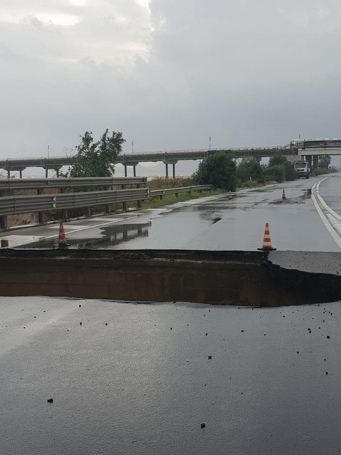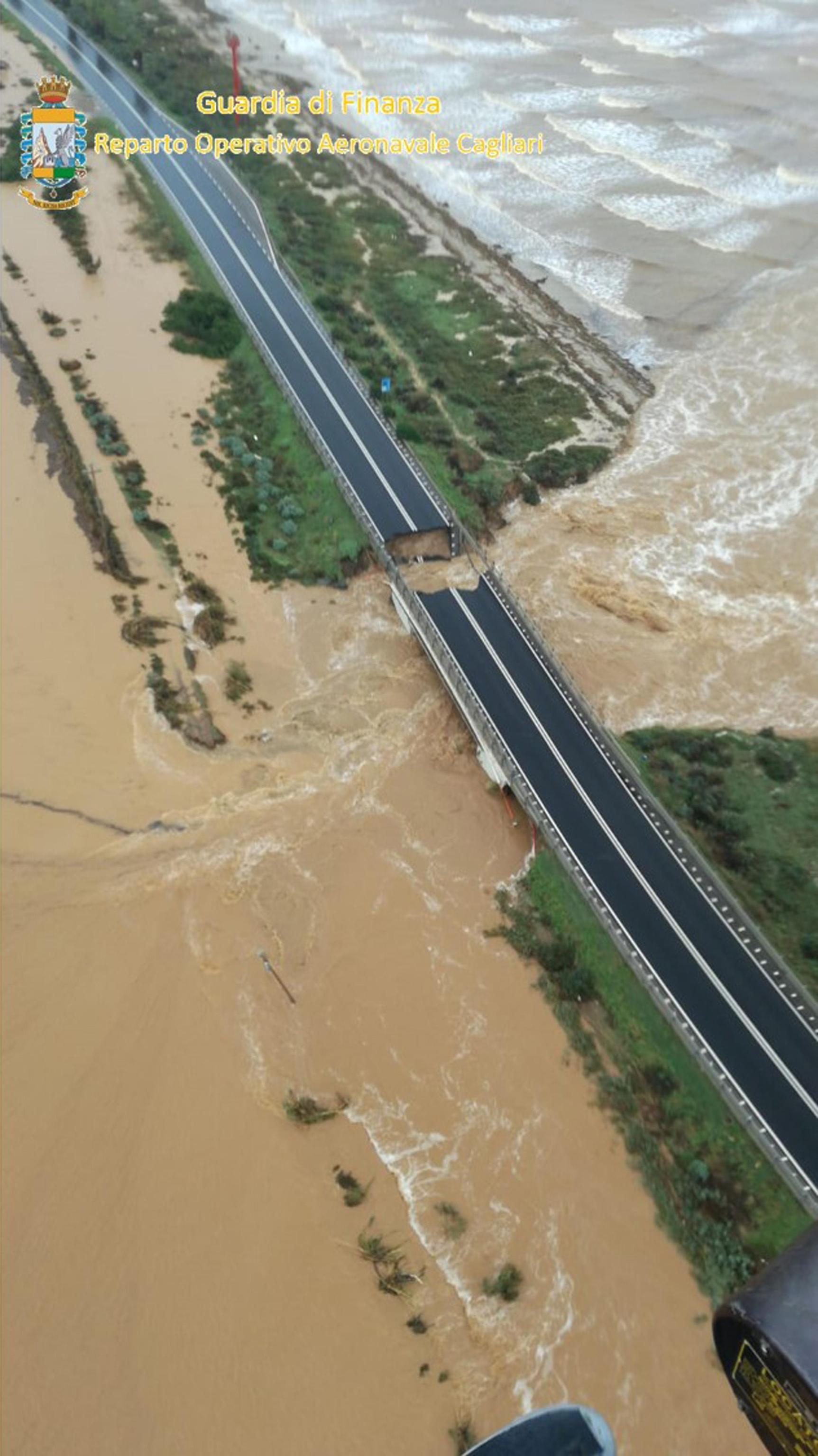 Sardegna. È crollato completamente il ponte sul rio Santa Lucia lungo la statale 195 che collega Cagliari al comune di Capoterra. Un tratto di strada, qualche chilometro prima, era già ceduto provocando una voragine che ha costretto la Polizia municipale a chiudere la statale all’altezza del ponte della Scafa. La forza dell’acqua, a seguito dell’esondazione del rio avvenuta questa mattina, ha inghiottito in queste ore quello che rimaneva della strada già parzialmente sommersa dopo la rottura degli argini del rio Santa Lucia. Ora con il crollo la statale è tagliata letteralmente in due.