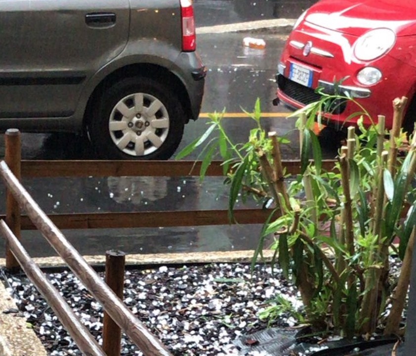 Maltempo, nubifragio a Milano: auto bloccata in un sottopasso a Baranzate (Nella foto Twitter, la grandine a Milano)