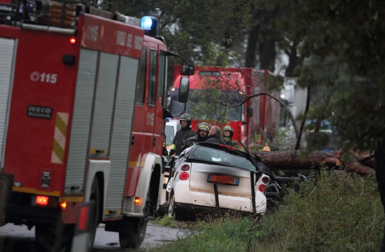 Un morto a Terracina, sul litorale laziale. La vittima è stata colpita da un albero mentre era in auto.