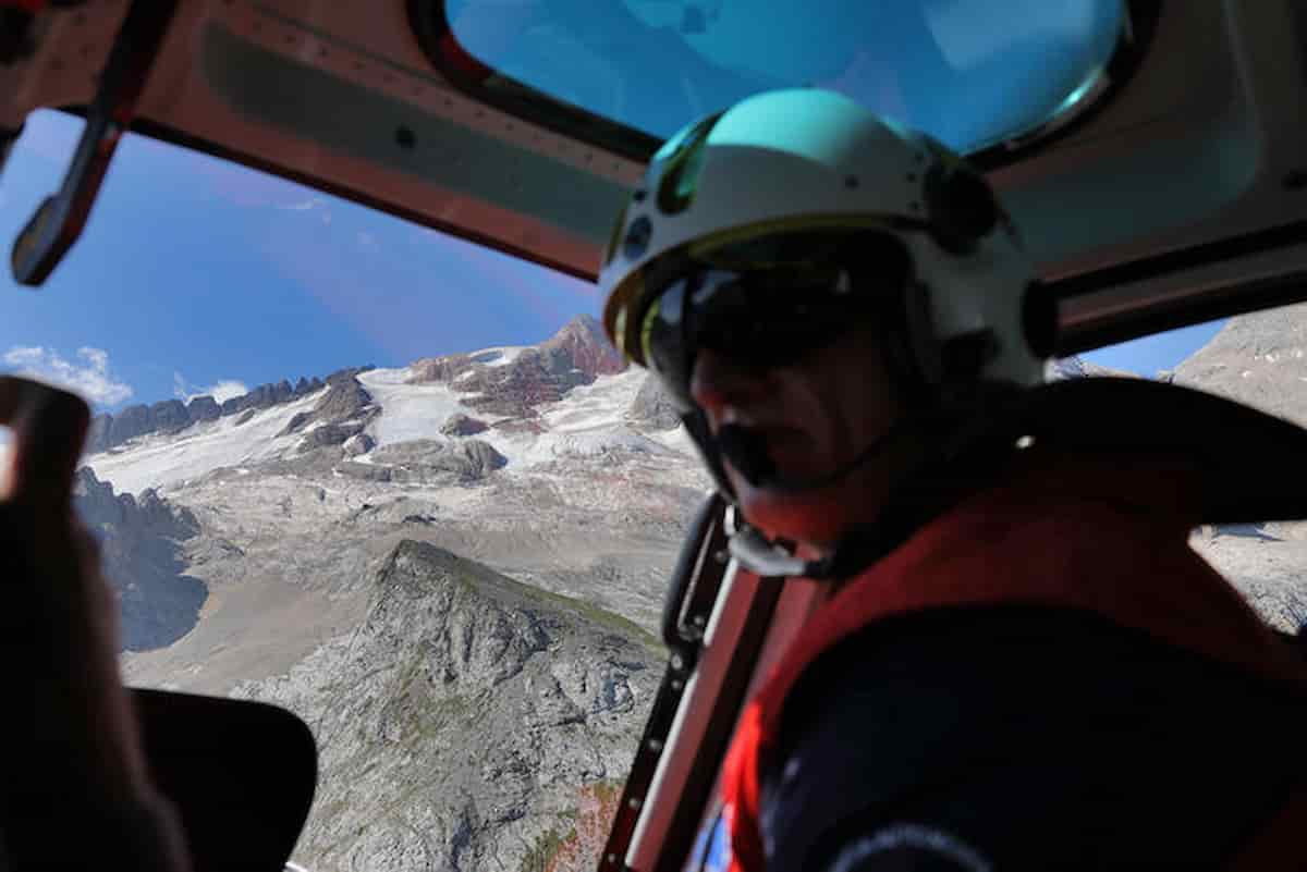 Marmolada, continuano le ricerche dei dispersi: sono ancora 8. L'intero massiccio sarà chiuso (foto ANSA)