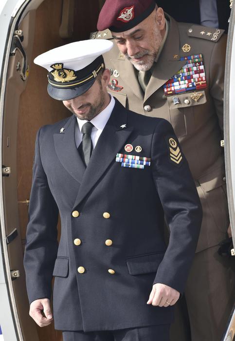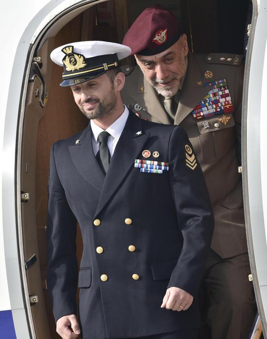 Dopo aver salutato i familiari all’interno dell’aereo il marò è sceso dal velivolo e ha stretto la mano al ministro degli Esteri Paolo Gentiloni. Poi ha abbracciato per qualche secondo la ministra della Difesa Roberta Pinotti. Ad attenderlo c’erano, tra gli altri, i presidenti della commissione Esteri della Camera, Fabrizio Cicchitto, e del Senato, Pier Ferdinando Casini e il sindaco di Bari Antonio Decaro.