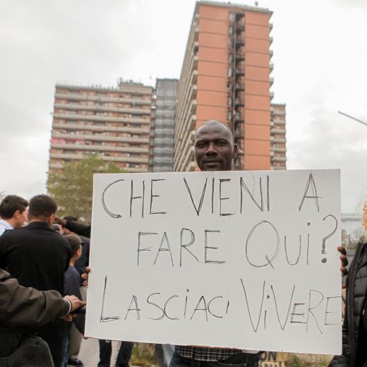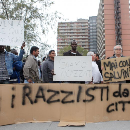Il segretario leghista è arrivato all’Hotel House in anticipo rispetto all’orario previsto, attorno alle 14:45. Ad attenderlo ha trovato un centinaio di residenti del condominio, quasi tutti maghrebini, che avevano occupato la via di accesso allo stabile. I manifestanti si sono rifiutati di aprire un varco per lasciargli il passo, ci sono stati attimi di tensione, al suono di “vattene!”, “vergognati!”, grida e fischi, ma la polizia ha tenuto la situazione sotto controllo e non ha caricato.