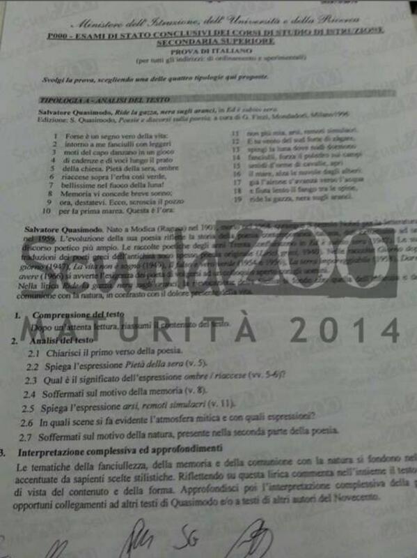ROMA – Maturità 2014, è il giorno della prima prova, quella di italiano. Alcune tracce erano quelle più quotate nel toto-traccia dei giorni precedenti (vedi Salvatore Quasimodo per la letteratura), altre sono state più a sorpresa.