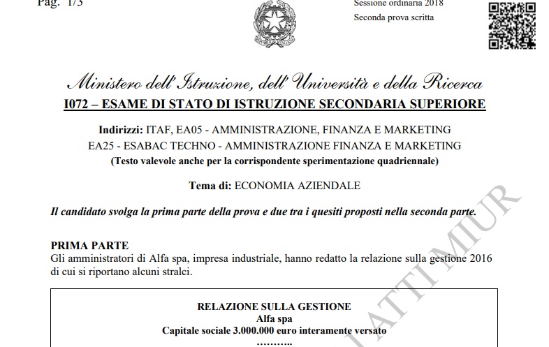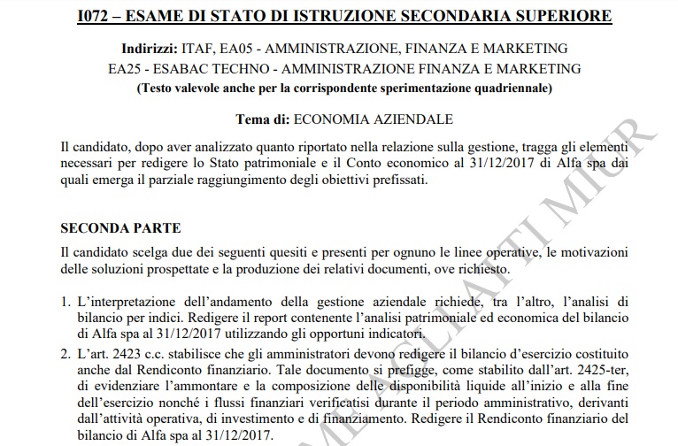 ROMA – La traccia della seconda prova di Ragioneria (amministrazione, finanza e marketing) verte sull’analisi di un bilancio societario e sulla redazione di stato patrimoniale e conto economico.
