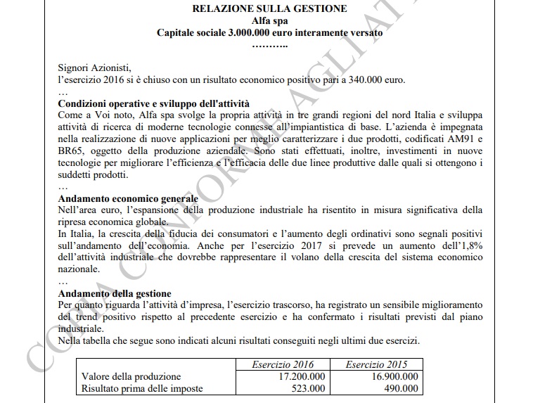bilancio per indici. Redigere il report contenente l’analisi patrimoniale ed economica del bilancio