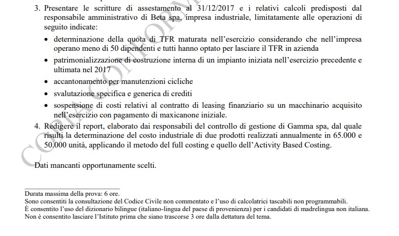 3. Presentare le scritture di assestamento al 31/12/2017 e i relativi calcoli predisposti dal