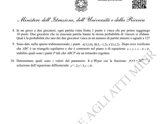 CLICCA QUI per il PDF della seconda prova di matematica del Liceo Scientifico.