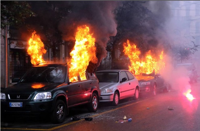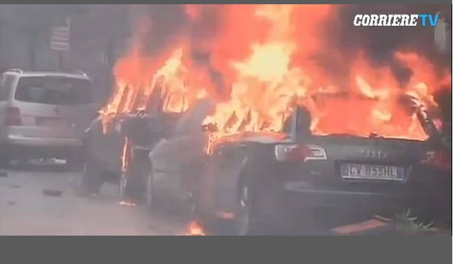 MILANO – Uno maggio, via Cadorna, Milano. E’ il momento in cui i black bloc danno il via agli scontri a Milano durante il corteo No-expo. In quel momento partono le molotov: alcune colpiscono le macchine parcheggiate in strada. Diverse prendono fuoco, più o meno una ventina. Tra queste c’è anche l’auto della ex compagna del leader della Lega Nord Matteo Salvini.