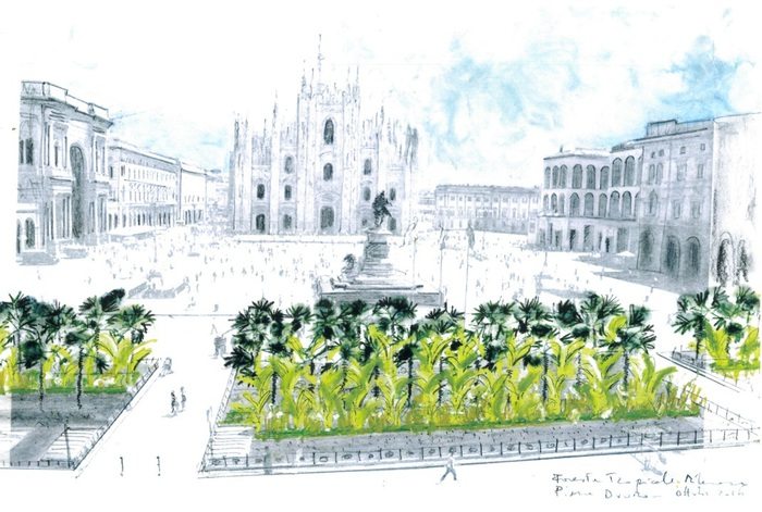 Anche le piante di banane erano previste dal progetto di decorazione legato alla sponsorizzazione privata di Starbucks, la catena di bar americani che aprirà a primavera e che ha vinto il bando del Comune per il giardinetto in piazza Duomo.