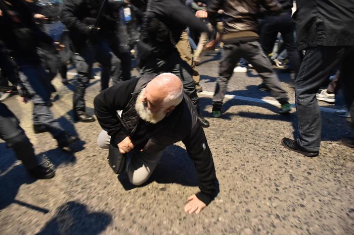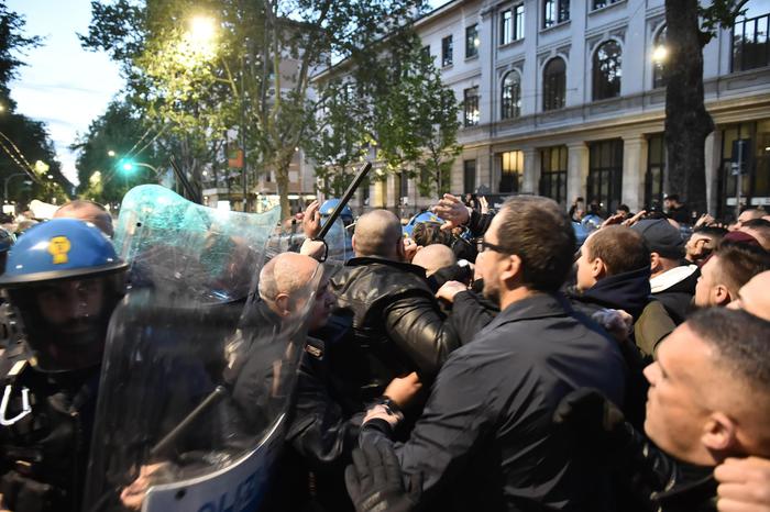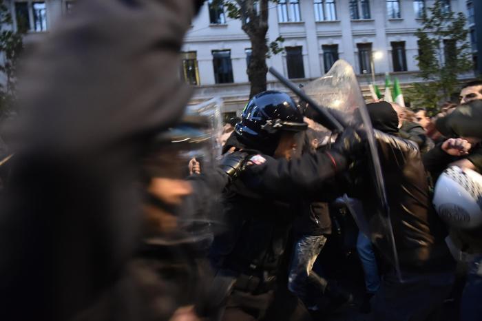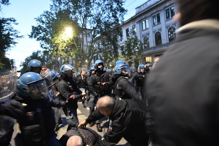 Il manifestante ha poi ripreso conoscenza ed è stato visitato dal personale del 118: gli è stato riscontrato un “forte trauma cranico”. Altri due avrebbero riportato ferite alla testa: uno di loro, scrive l’Adnkronos, sanguinava dal volto. Il secondo ferito è un architetto milanese, inciampato nei concitati momenti dei tafferugli, con un profondo taglio a un sopracciglio. Contusi anche due agenti.