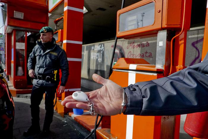 Su un’altra colonnina è stata rinvenuta una minuscola leva, posizionata in un tombino sotterraneo “occulto” che faceva “girare a vuoto”, senza soluzione di continuità, il totalizzatore del prezzo sin dal momento in cui la pistola erogatrice veniva estratta dalla colonnina facendo pagare all’ignaro cliente l’aria al prezzo del carburante.
