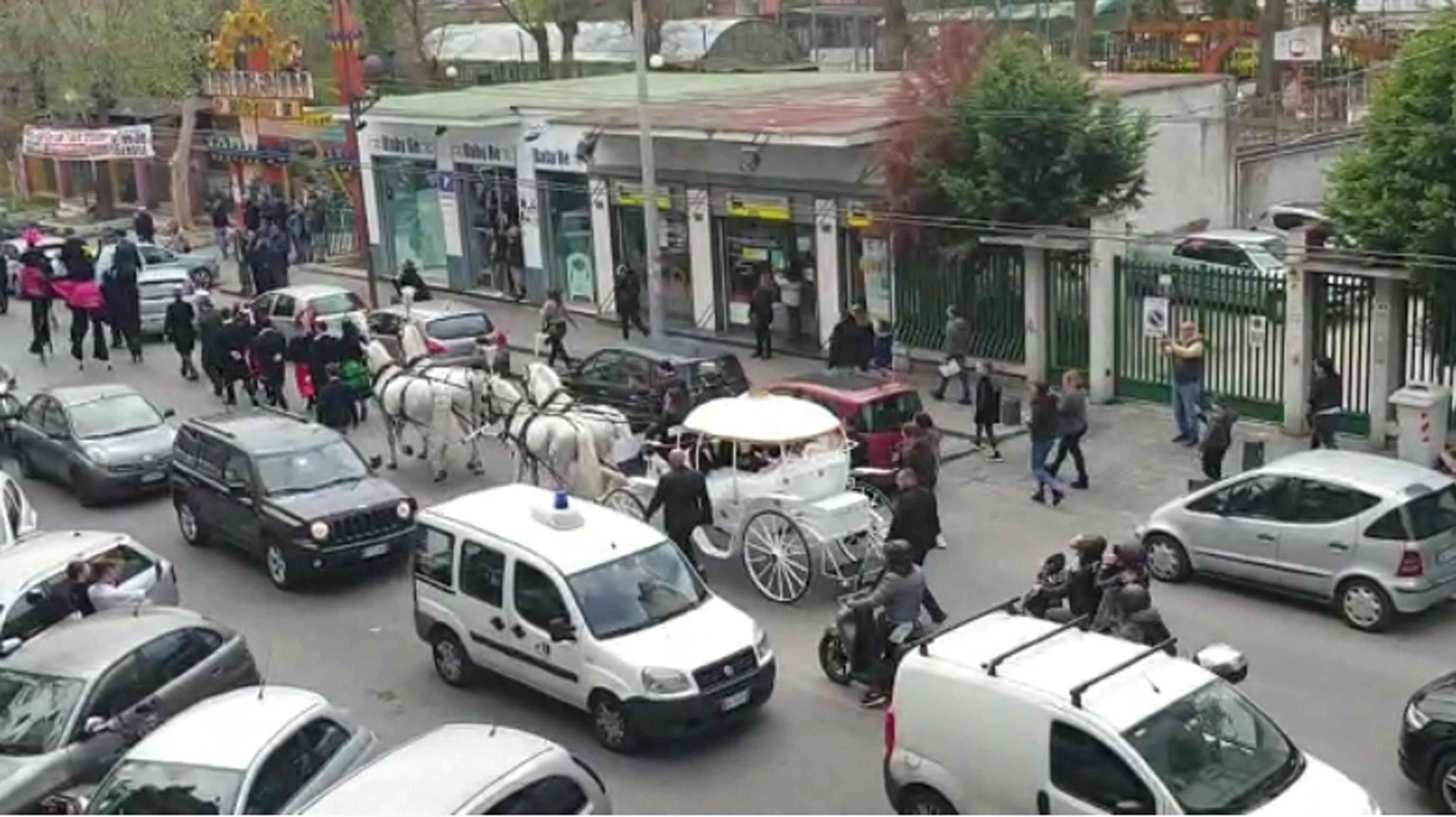Napoli, nozze tra Tony Colombo e la vedova del boss: gli agenti multano la carrozza con i cavalli (foto Ansa)