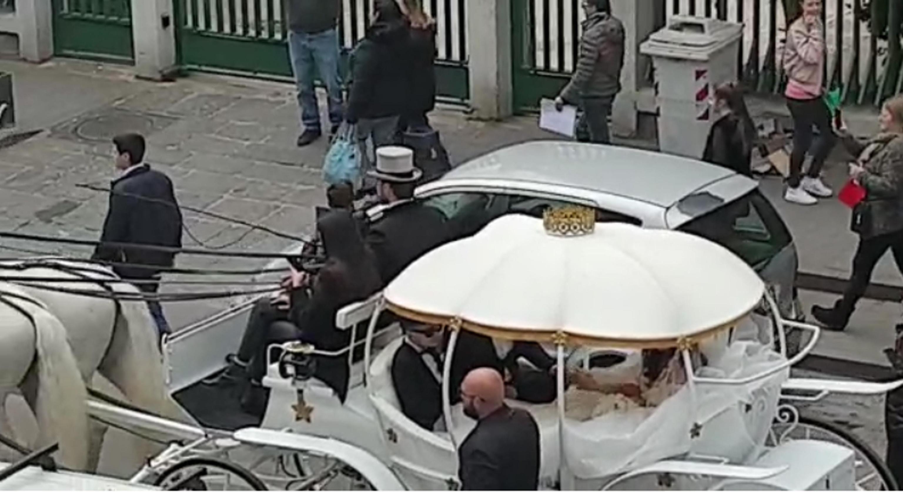 In mattinata nel quartiere di Secondigliano, i vigili urbani erano intervenuti per il corteo formato da fan e curiosi che seguivano il passaggio di una carrozza con cavalli e giocolieri per le nozze del cantante Tony Colombo. La carrozza ha attraversato il corso Secondigliano, è stata fermata e sanzionata dagli agenti che hanno riscontrato diverse irregolarità come previsto dal Codice della Strada, a carico del conduttore della carrozza. Infatti era senza targhetta identificativa e segnale mobile di pericolo per i veicoli a trazione animale e ha rallentato la pubblica circolazione in assenza di alcuna autorizzazione o comunicazione alle autorità. L’evento è proseguito al Maschio Angioino dove i caschi bianchi hanno fatto controlli sull’utilizzo dei droni, acquisendo le autorizzazione fornite da fotografi dell’evento. Vista l’affluenza di cittadini e la calca formatasi nell’area circostante il Maschio Angiono, si è provveduto, inoltre, a tenere sgombera la rampa di accesso. (fonte: Agi)