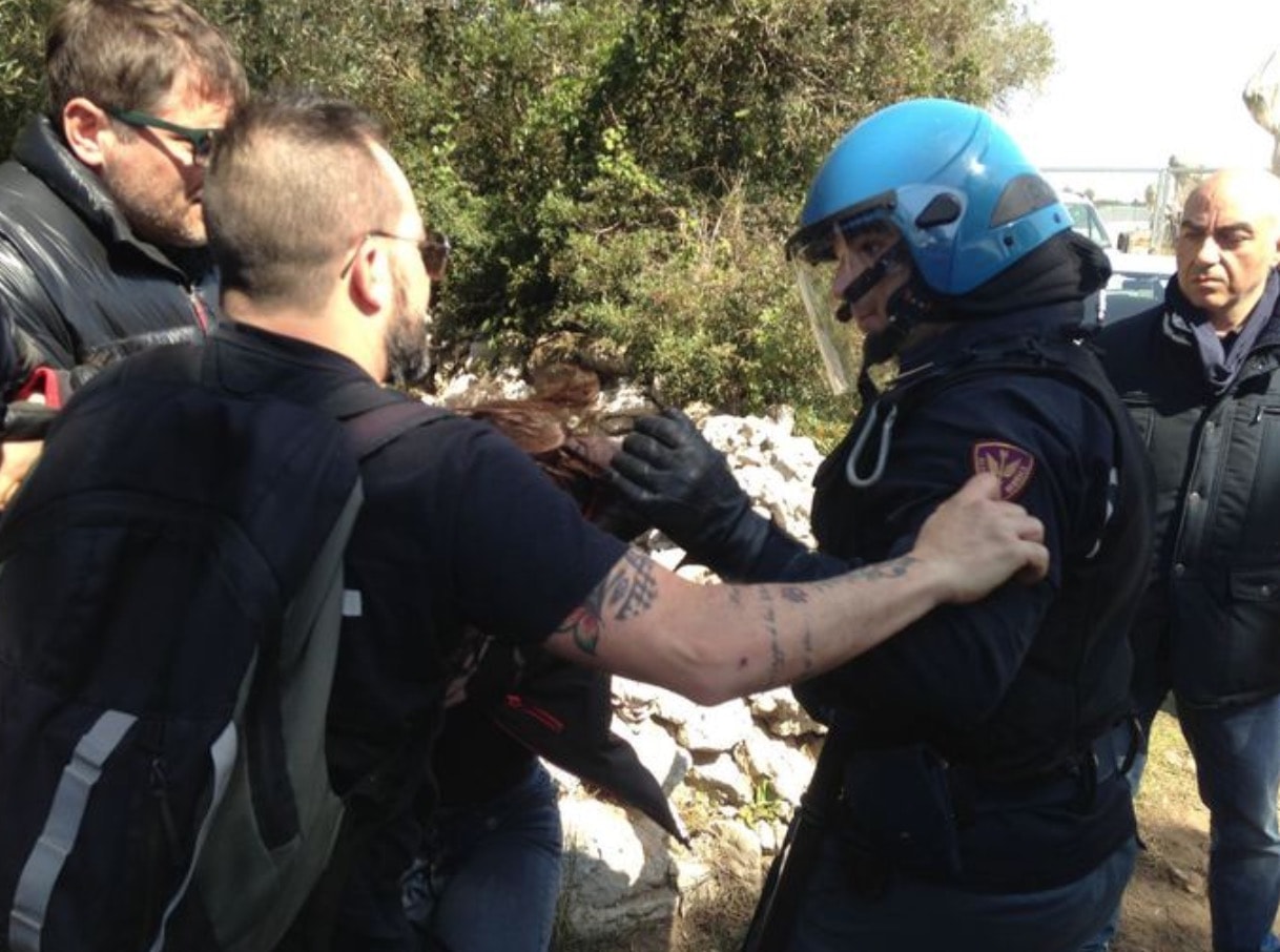 LECCE – Scontri tra polizia e attivisti No Tap in Puglia nella notte: due agenti lievemente feriti e un attivista, Saverio Pellegrino, arrestato.