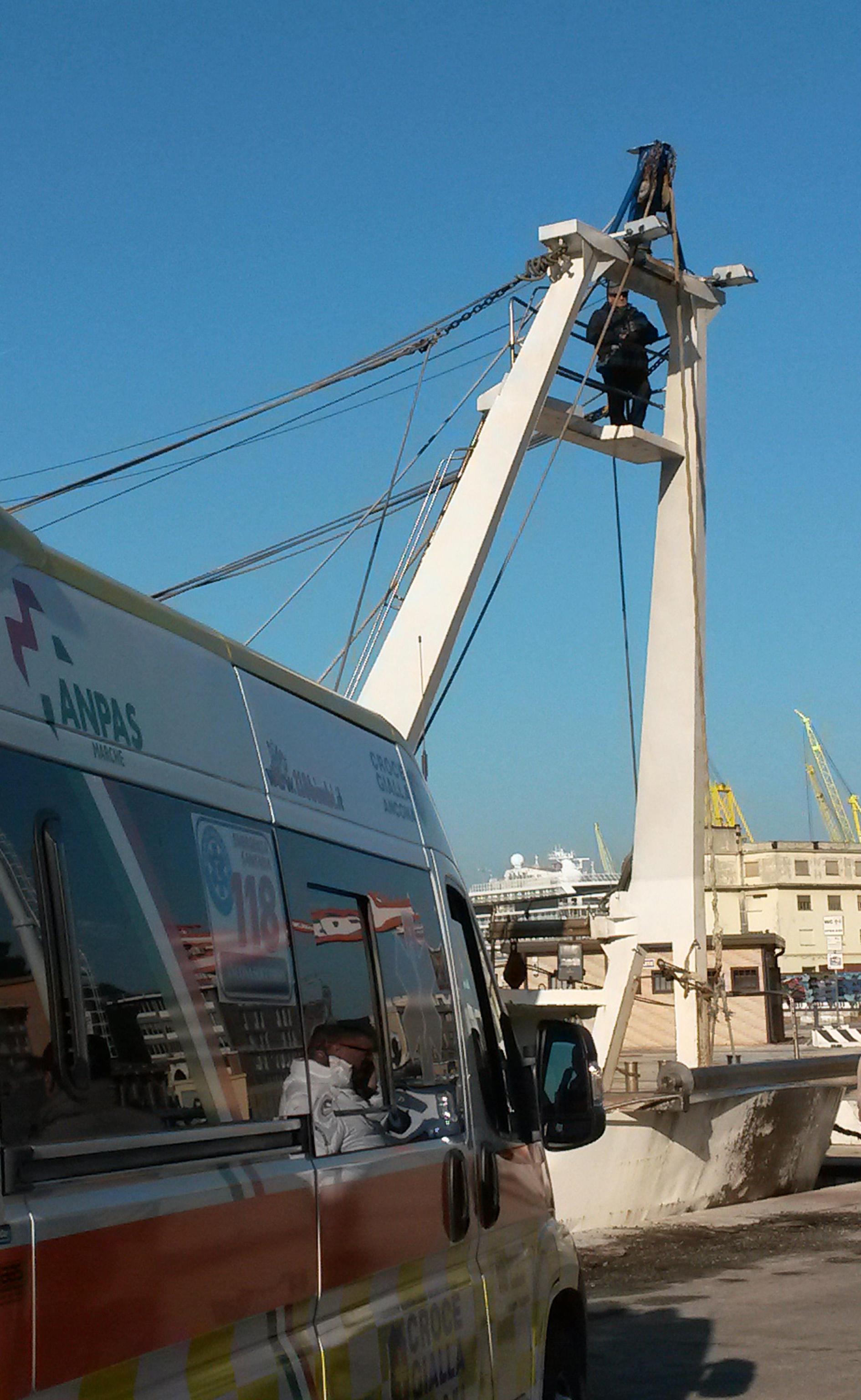 Sul posto, domenica mattina, sono subito intervenuti vigili del fuoco, polizia, Capitaneria di porto e 118. La moglie di Colella e il legale, l’avv. Antonio Micucci, cercano di convincerlo a scendere, finora inascoltati. Colella, armatore del ‘Dragut’, un piccolo motopesca della marineria dorica che dà lavoro a 7 marittimi, e un suo collega, Girolamo Luciani, avevano fatto domanda per un aumento di potenza dei cavalli motore delle loro barche, spiega l’avv. Micucci.