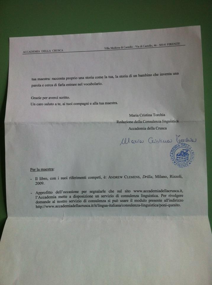 Ed ecco la risposta che l’Accademia della Crusca ha inviato al piccolo Matteo: