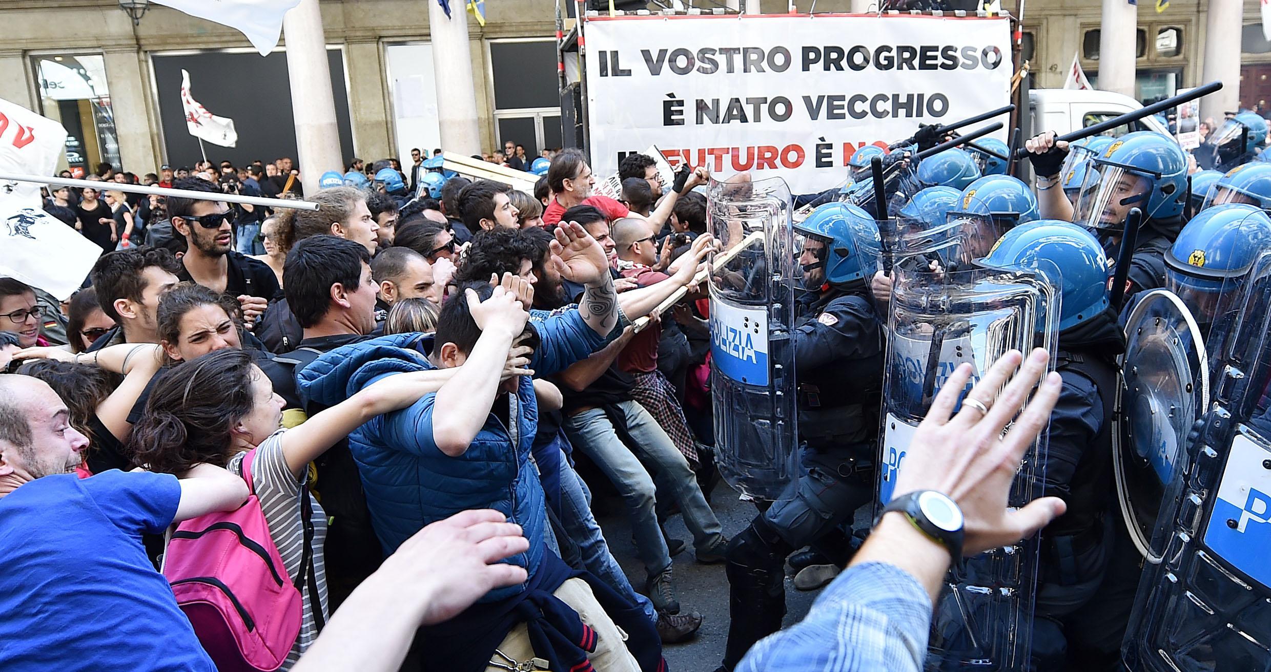TORINO – Momenti di tensione al corteo del Primo maggio a Torino, con i No Tav che hanno urlato contro le delegazioni del Pd slogan come “Fascisti” e “Siete come Salvini”. I gruppi sono venuti in contatto con spintoni e alcuni manifestanti No Tav sostengono di essere stati feriti da cinghiate dal servizio d’ordine del Pd. La polizia ha bloccato, con una carica e manganellate, un gruppo di No Tav che cercava di raggiungere la testa del corteo. Il movimento ha gridato “vergogna, fuori la Digos dal corteo”.