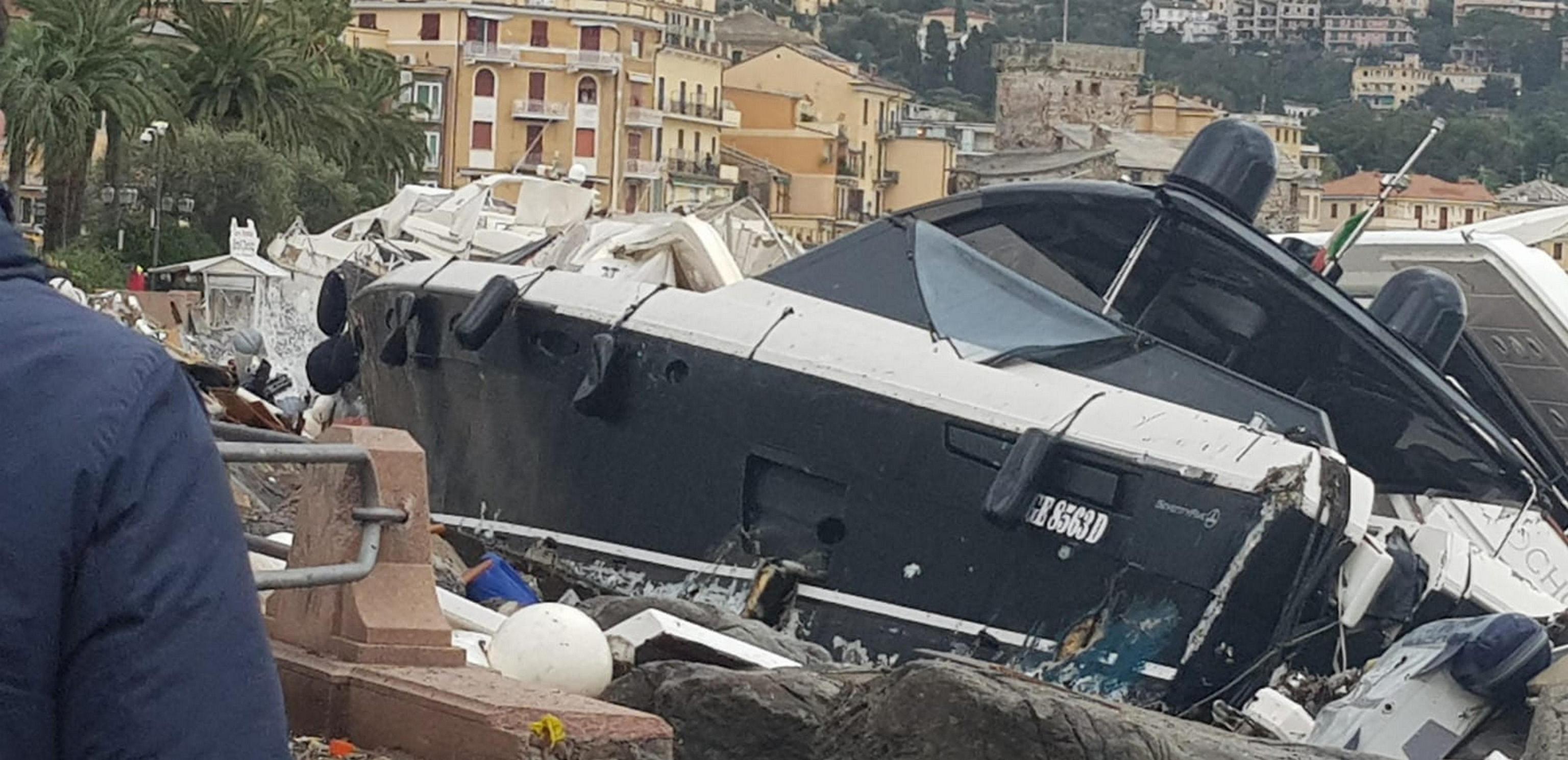 GENOVA – Uno scenario dai contorni apocalittici si e aperto oggi, martedì 30 ottobre, davanti agli occhi dei cittadini di Rapallo, in provincia di Genova: decine di yacht, motoscafi e barche a vela di tutte le dimensioni sono schiantate sulla scogliera del lungomare, intorno a quella dell’antico castello, simbolo della città, e sulla spiaggia.