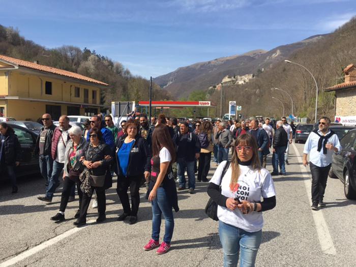 “Non si sta più parlando di viabilità – aggiunge una manifestante -. Dobbiamo fare le strade altrimenti restiamo isolati. La gente non può raggiungere amatrice, ma come facciamo a far ripartire il territorio”.