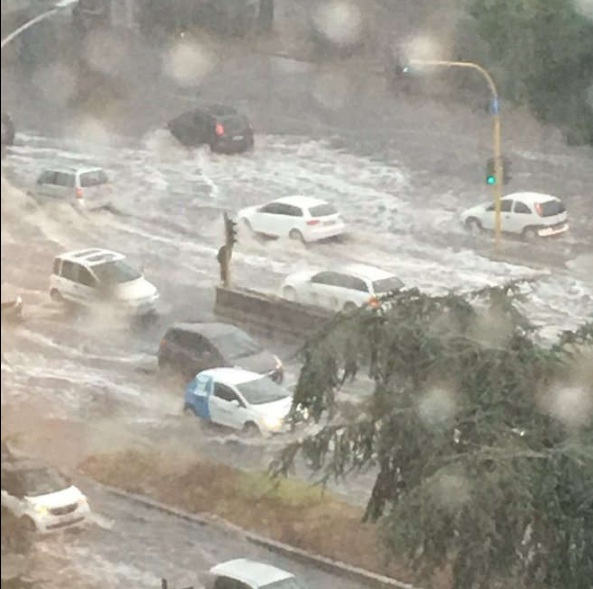 ROMA – Primo acquazzone di fine estate a Roma e la Capitale resta paralizzata. La bomba d’acqua si è abbattuta sulla città poco dopo le 11 di mercoledì 31 agosto: strade allagate, metro in tilt, la facoltà di Ingegneria a Roma Tre invasa dall’acqua. Code a tratti sul Grande raccordo anulare e sulla via Pontina: a causa della copiosa pioggia un camion è finito contromano, fortunatamente a velocità ridotta. Nessun ferito. E poi, disagi a Colli Albani dove i passeggeri hanno incontrato difficoltà ad uscire dalla stazione. Forti rallentamenti sulle linee 763 e 764. Numerose chiamate ai vigili del fuoco.