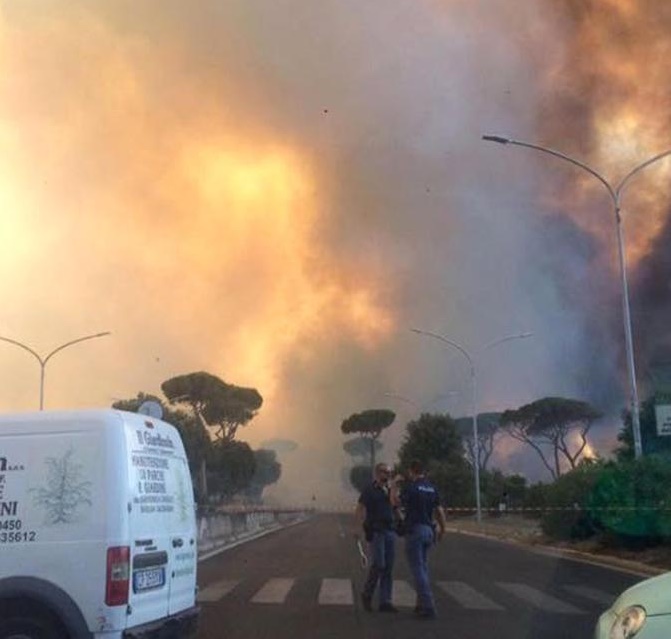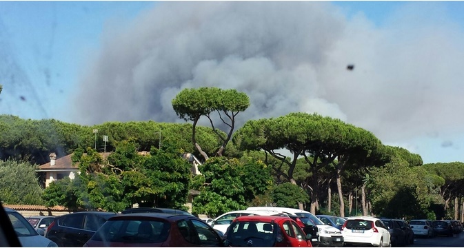 Molti residenti nel quartiere Infernetto a sud di Roma segnalano intense nubi di fumo. La cenere sta scendendo dal cielo ricoprendo le strade del quartiere. Sulle auto si è formata anche una spessa coltre di cenere. In molti hanno deciso di lasciare le case per l’odore irrespirabile ed il cielo completamente offuscato dal fumo.