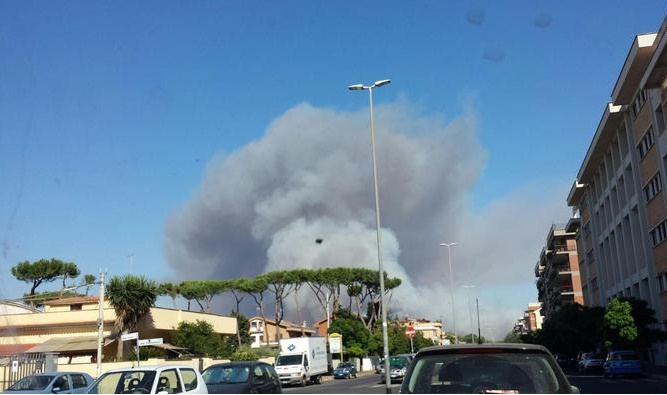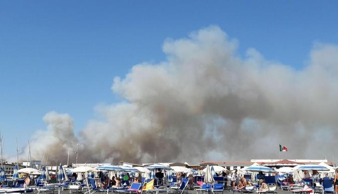 ROMA – Una colonna di fumo nero si alza dalla pineta di Castel Fusano, nel quartiere Ostia di Roma, dal pomeriggio del 17 luglio. Il secondo incendio in appena 10 giorni che divampa nella pineta che costeggia via Cristoforo Colombo, chiusa al momento al traffico. Il fumo nero è ben visibile dalla spiaggia e il rogo è divampato da ben tre punti differenti, tanto che per le autorità l’incendio potrebbe essere doloso e un sospetto è stato arrestato.