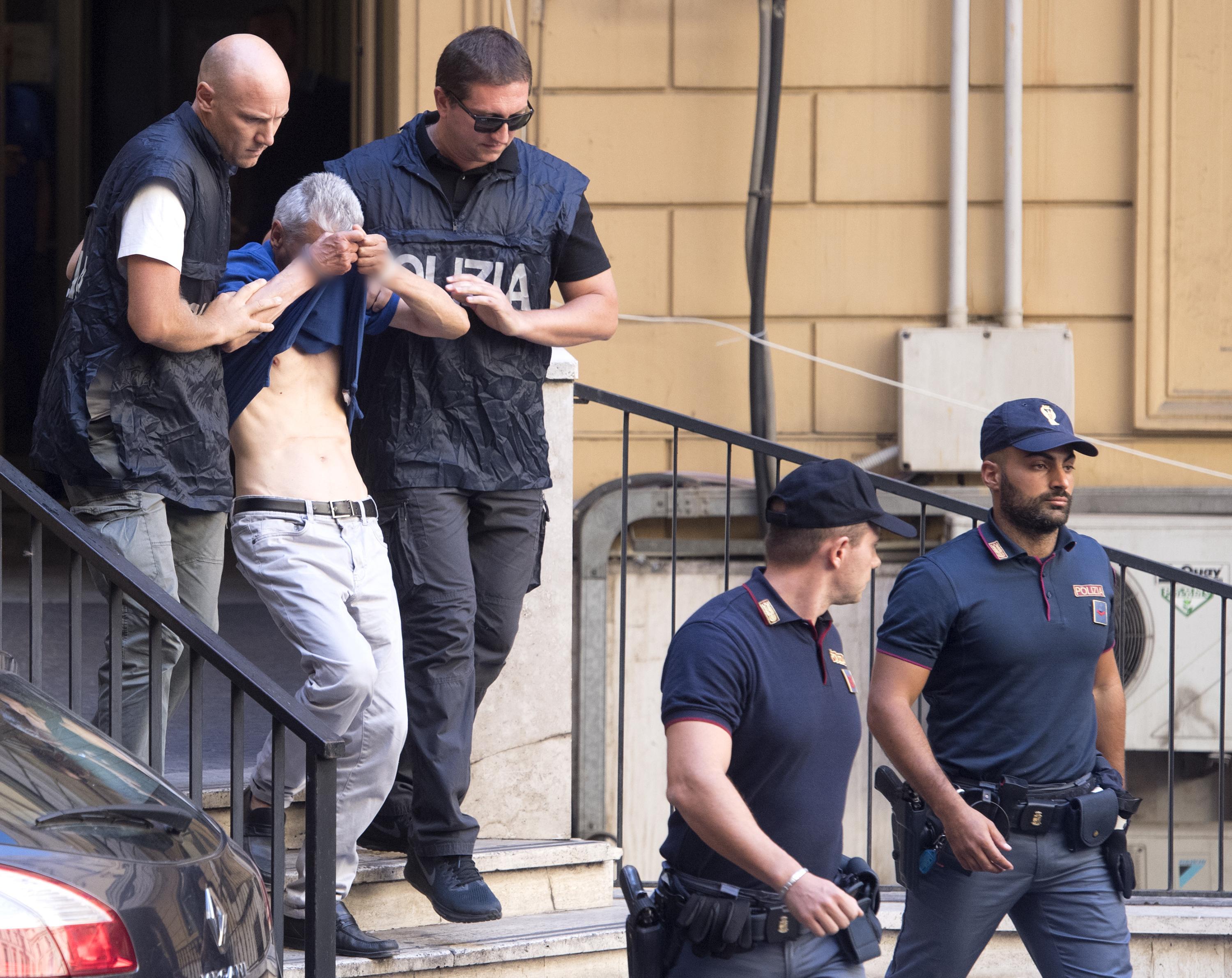 Maurizio Diotallevi al termine dell'interrogatorio in Questura viene portato via dagli agenti