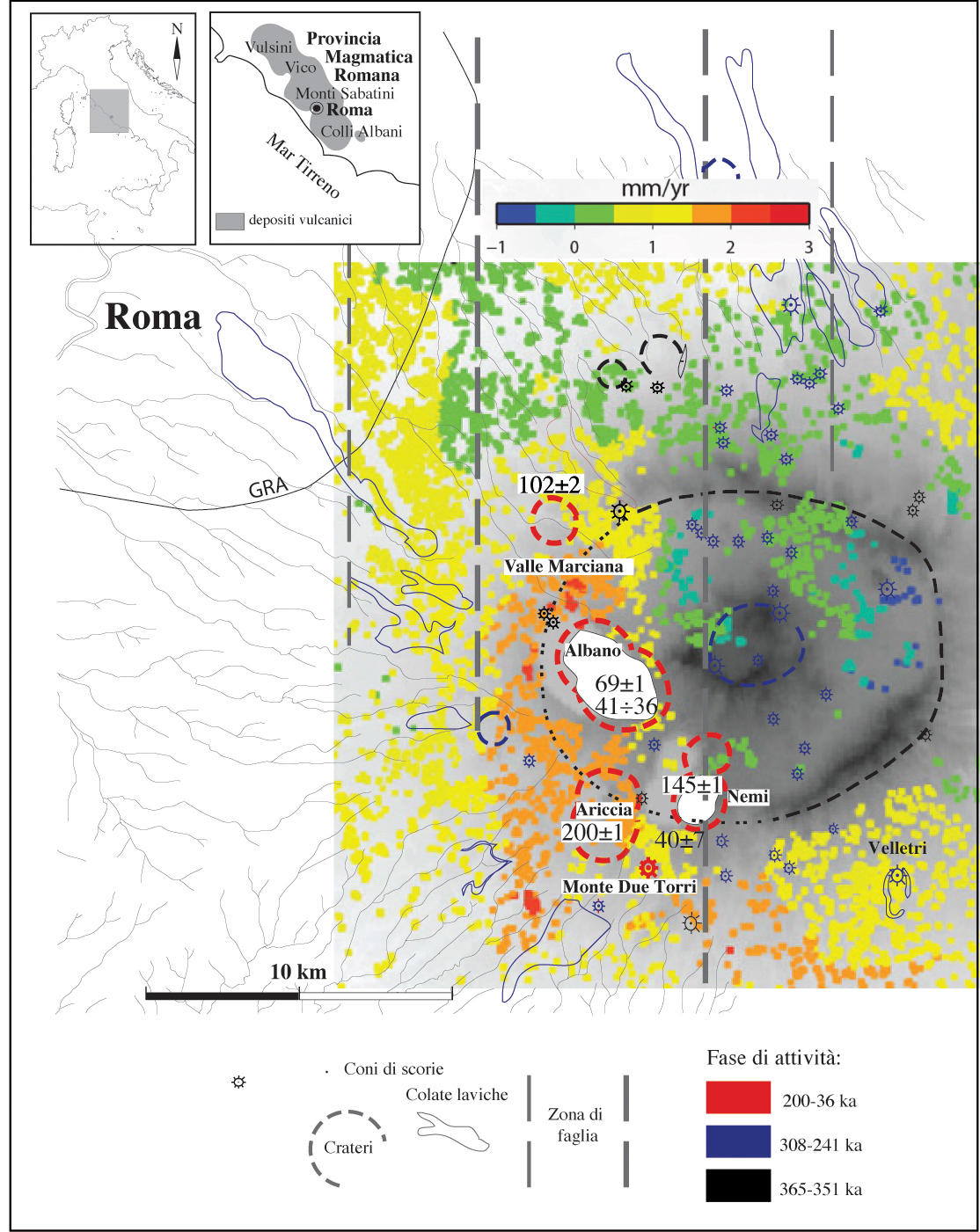 ROMA – A Roma c’è un vulcano che, dopo 36mila anni di assoluta inattività, si sta risvegliando. La zona interessata è quella dei Colli Albani. La zona comprende una parte del comune di Roma, la cittadina di Albano, ed altri comuni limitrofi.