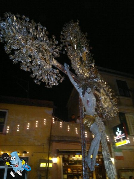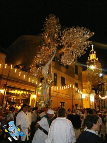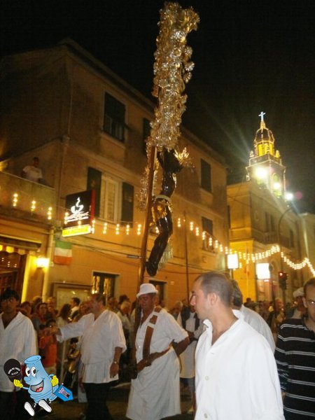 Santo di Roma, di cui fu vescovo e dove gli è consacrato un popolare rione e gli sono dedicate numerose chiese, San Lorenzo è celebrato un po’ dappertutto, da Milano alla Spagna. Da lui prende nome una frazione di Santa Margherita Ligure (Genova), appollaiata tra i monti, dove abita gente ruvida e scontrosa e passa l’ultimo tratto di via Aurelia prima di scendere a Rapallo, strada bloccata ogni anno per ore da una fantastica processione, ornata di Crocifissi tintinnanti di foglie d’argento (Cristi li chiamano nel territorio e stramûoei de Cristo quelli che lo portano sulla pancia con enorme fatica). Il tutto poi è corredato da luminarie, falò e fuochi d’artificio (forniti da una ditta di Napoli).